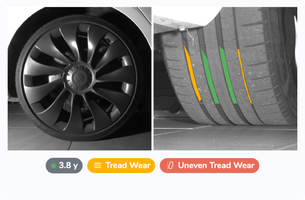 That’s where UVeye can help. Unlike traditional visual inspections that rely on manual measurements and a quick glance, UVeye’s AI-powered scanning technology captures high-resolution images of your vehicle’s tires in a matter of seconds. It then analyzes them for signs of uneven wear, low tread, sidewall damage, and even alignment issues. This automated, precise approach means you get a comprehensive tire check without any guesswork.